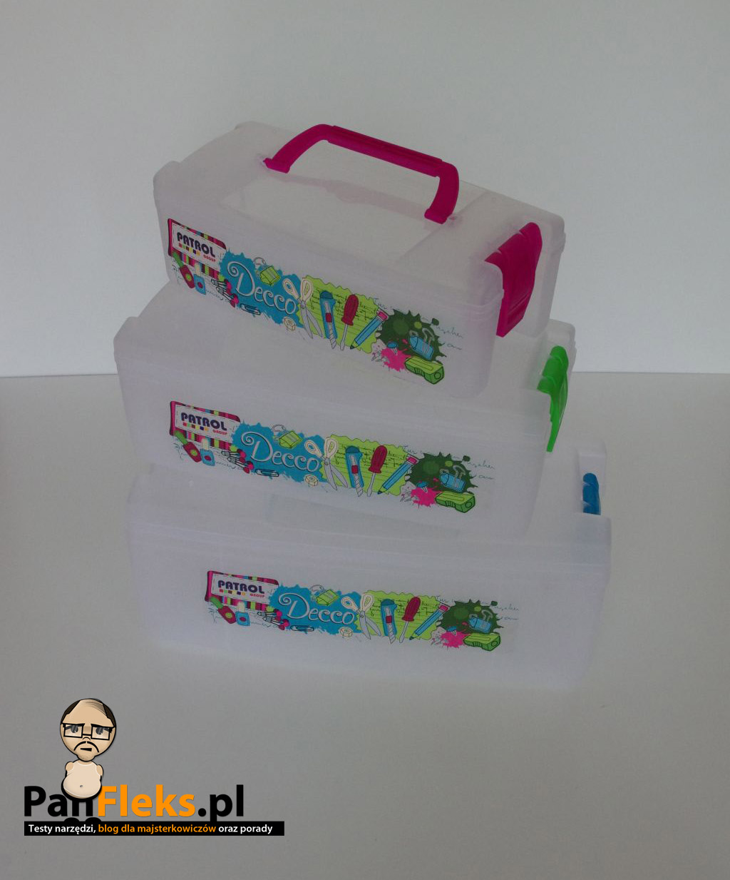 Pan Fleks wspominał już kiedyś o producencie skrzynek i wyposażenia warsztatów, firmie Patrol Group. Otóż wspomniany Patrol, wpadł całkiem niedawno na szalony pomysł, aby ożywić nieco skrzynki. Tak oto powstała linia Decco, czyli skrzynki o różnej wielkości, zupełnie inne od tych, jakie znamy. Linia Home została stworzona z myślą o pracach domowych, w których używamy drobnych narzędzi. Organizery z lini Decco występują w 4 różnych rozmiarach. Charakteryzuje je ciekawa grafika w żywych kolorach i kolorowe rączki oraz zatrzaski. O szczegółach możecie poczytać na stronie producenta. Powiem Wam w sekrecie, że skrzynki Decco należy bezwzględnie trzymać z dala od małych dzieci. Bo w innym wypadku zamiast Waszych narzędzi zamieszkają tam dinozaury i sztuczne pająki.